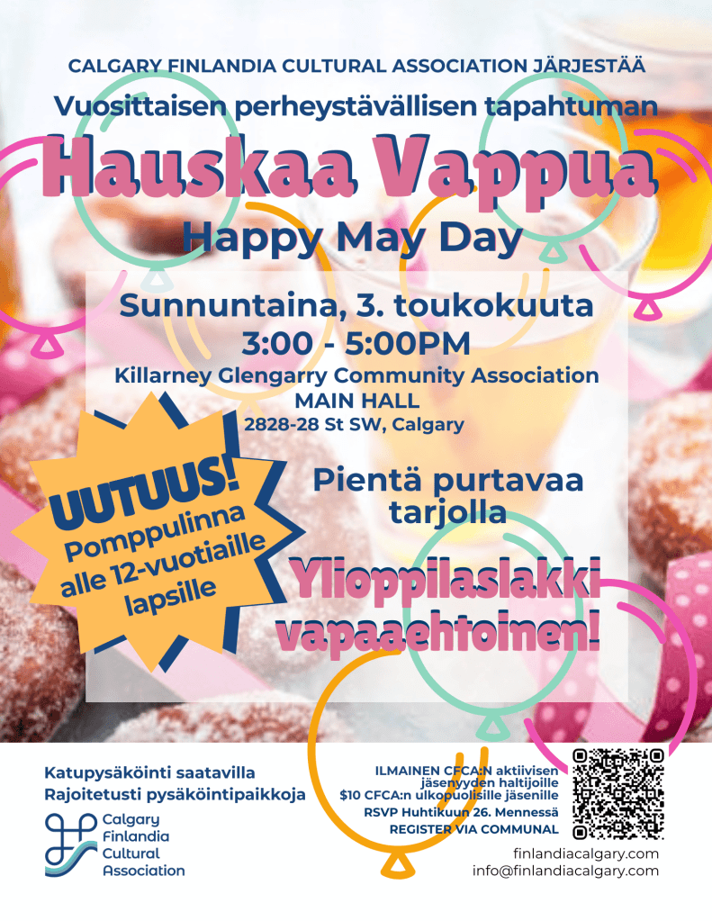 Calgary Finlandia Cultural Association invites seniors 60 years of age or older to join us on a trip to Rosebud Theatre on Saturday, April 11, 2026.